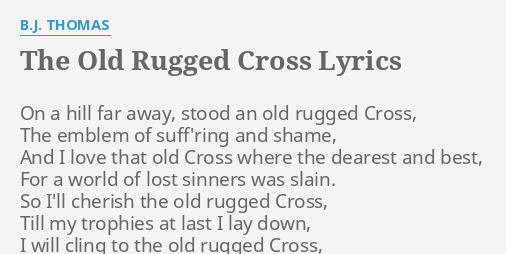 In the old rugged cross stain d with blood so divine a wondrous beauty i see for the dear lamb of god left his glory above to pardon and sanctify me so i ll cherish the old rugged cross till my trophies at last i lay down i will cling to the old rugged cross and exchange it some day for a crown to the old rugged cross i will ever be true.